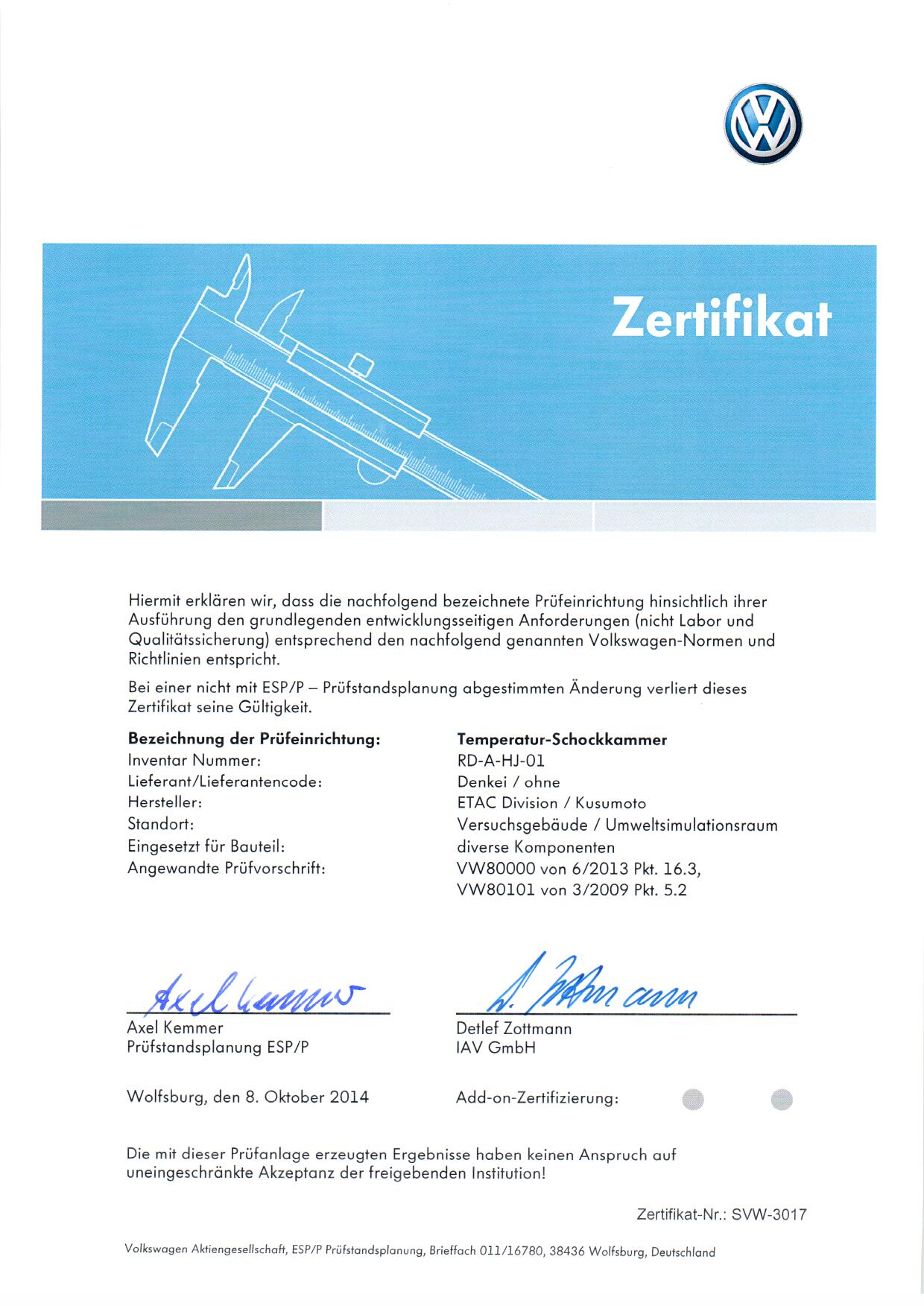 德国大众认可证书-3017